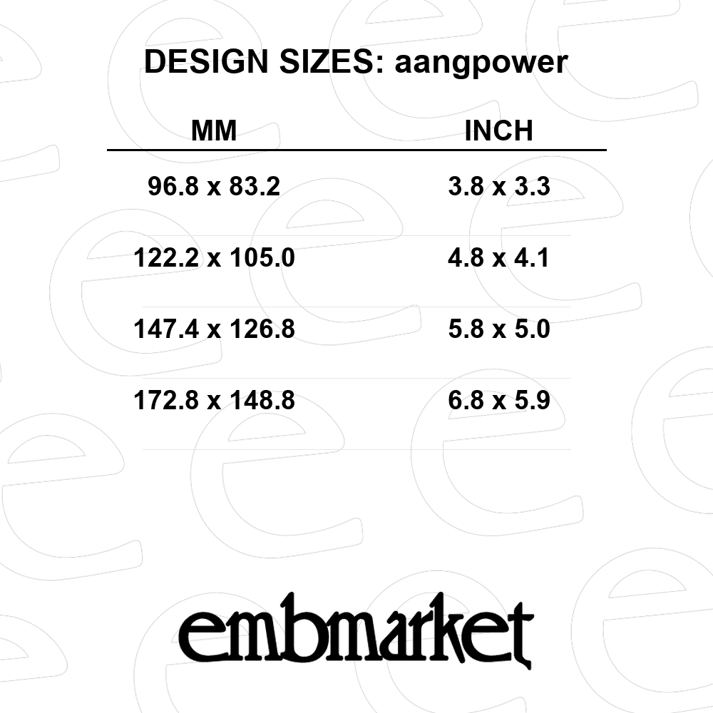 Bring the power of the elements to your projects with this Aang in avatar state with elements loop and floating rocks embroidery design. This professionally digitized pattern features a dynamic pose with elemental energy and floating rock details.
