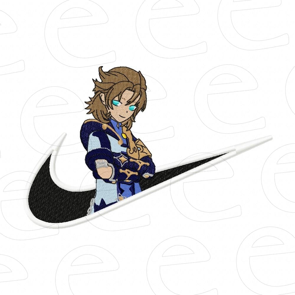 Add a striking touch to your apparel with the Albedo in swoosh machine embroidery design. This professionally digitized anime pattern ensures smooth stitching for high-quality results.