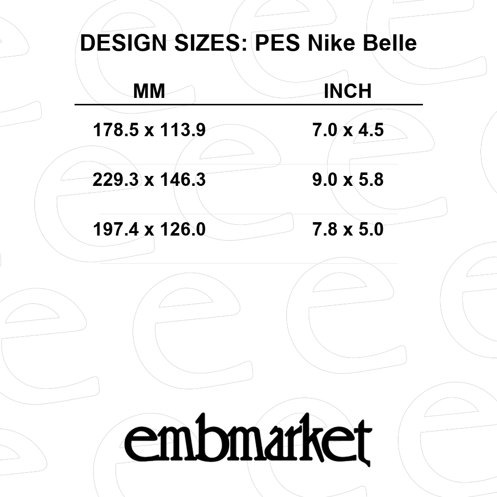 This Belle in Nike with swoosh design is perfect for personalizing hoodies, jackets, and gym bags. It offers a professional finish for high-quality digital patterns.