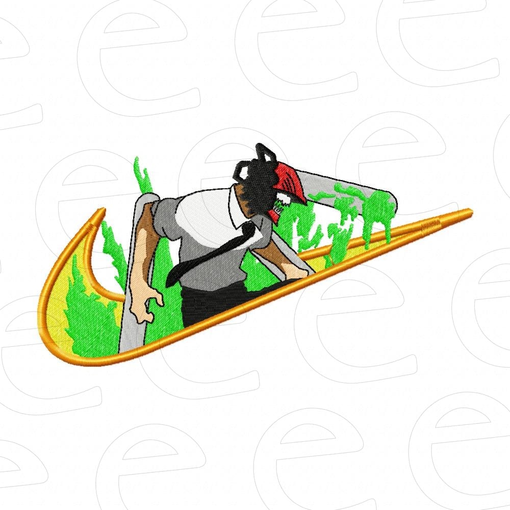 Upgrade your gear with this Chainsaw Man in swoosh with green blood embroidery design. This anime machine embroidery design is digitized for clean results on streetwear and hoodies.