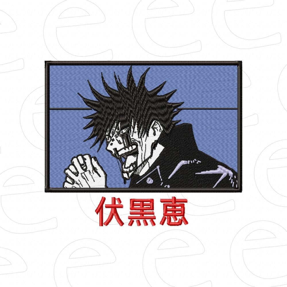Streetwear hoodies, denim jackets, and tote bags. This Megumi Fushiguro in rectangular frame with Kanji design is professionally digitized for a clean finish on most fabrics. Compatible with Brother, Janome, and major machine brands. High-quality digital file for commercial use projects.