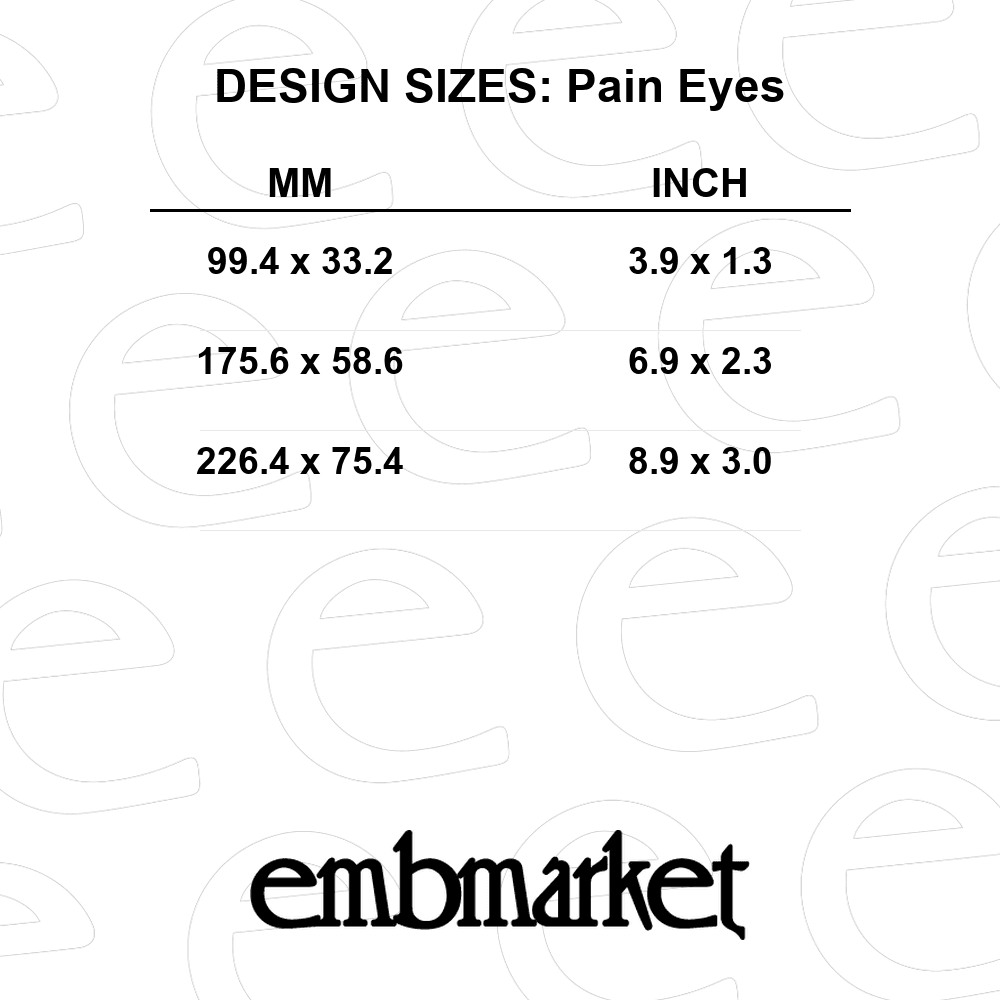 This package includes the following file formats to ensure maximum compatibility: DST, EXP, HUS, JEF, PES, SEW, VP3, and XXX. Whether you operate a Brother, Singer, Bernina, or Janome machine, the Pain in box design is formatted to perform efficiently.