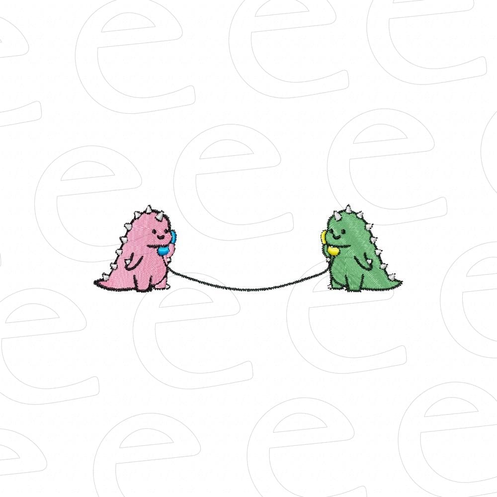 Pink and Green Dinosaurs on Telephone Embroidery Design