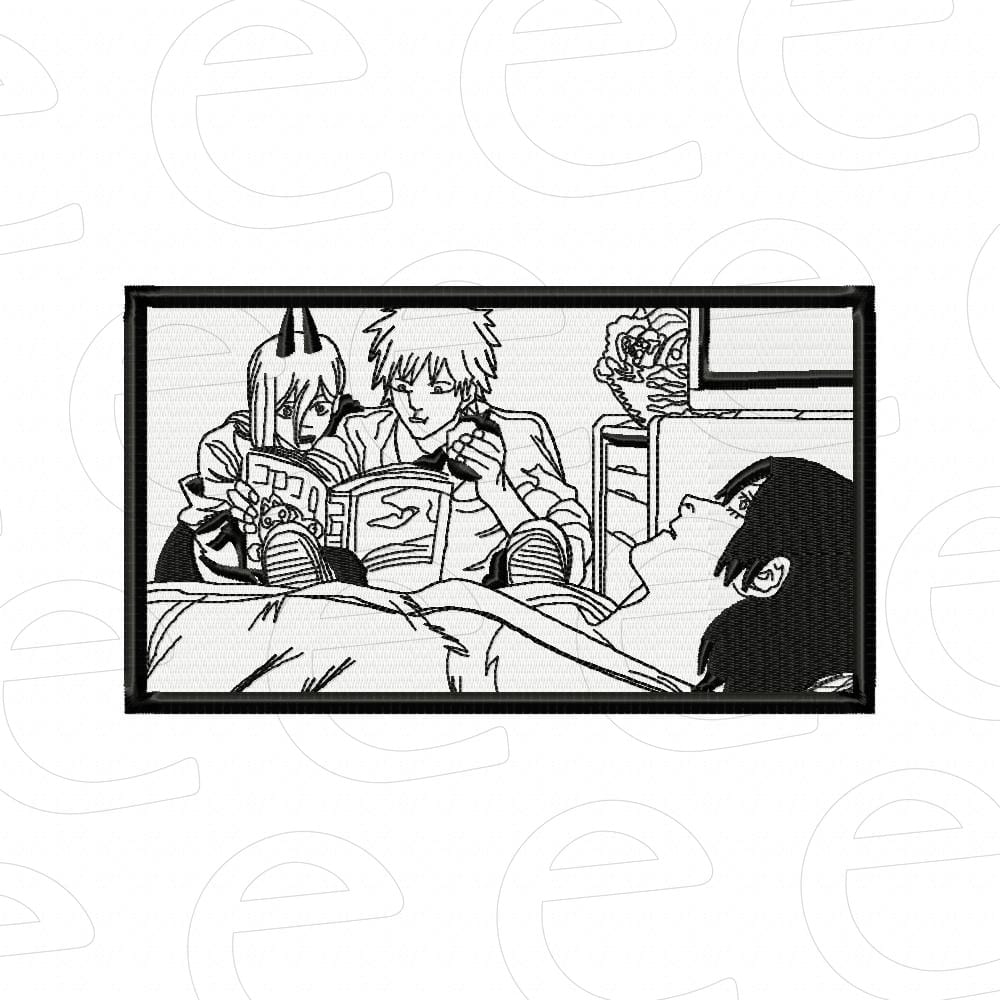 This Power, Denji and Aki in hospital frame pattern is compatible with most modern embroidery machines. Ensure your hoop size matches the specific design dimensions before beginning your project to ensure the best results.