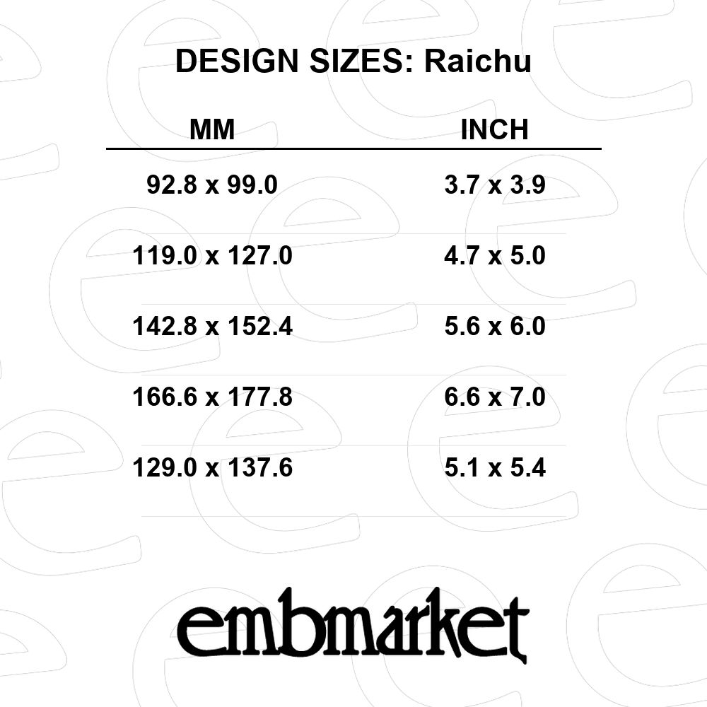 Raichu with Lightning Bolt Tail Pokemon Machine Embroidery Design