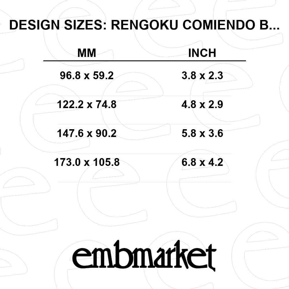 Custom hoodies, denim jackets, and framed wall art. This Rengoku with chopsticks in a rectangle frame pattern is compatible with most modern embroidery machines. Enhance your apparel projects with this unique anime machine embroidery design today.