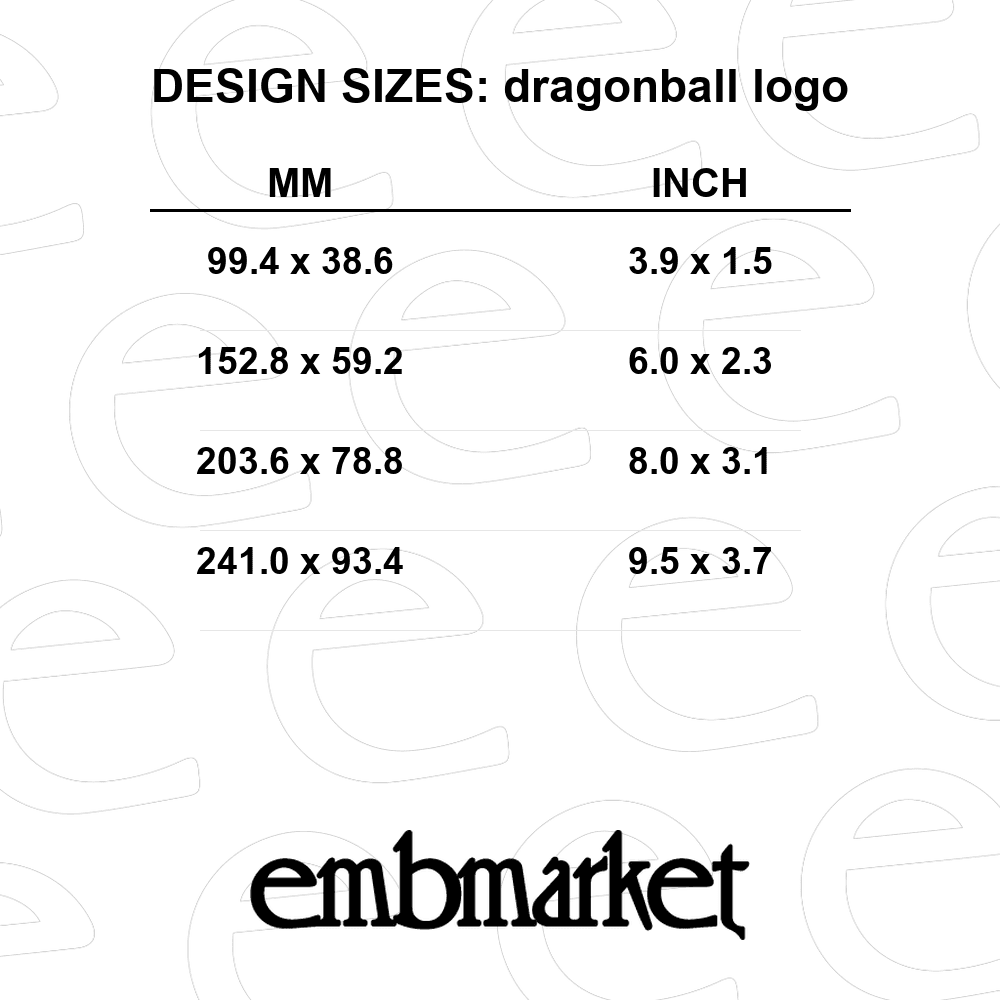 Download this professional Shenron in Dragon Ball lettering with seven dragon balls machine embroidery design. This digital file is perfect for anime enthusiasts looking to create high-quality apparel or accessories.